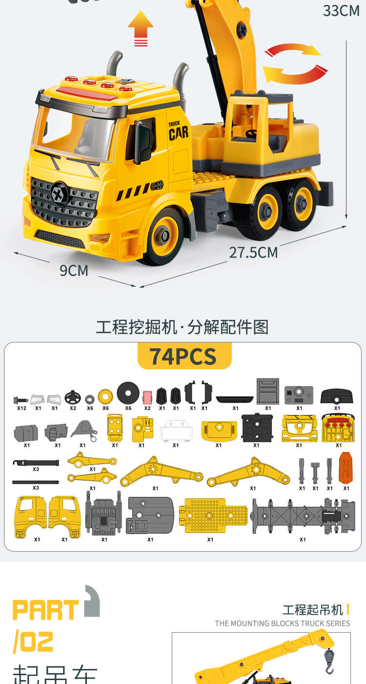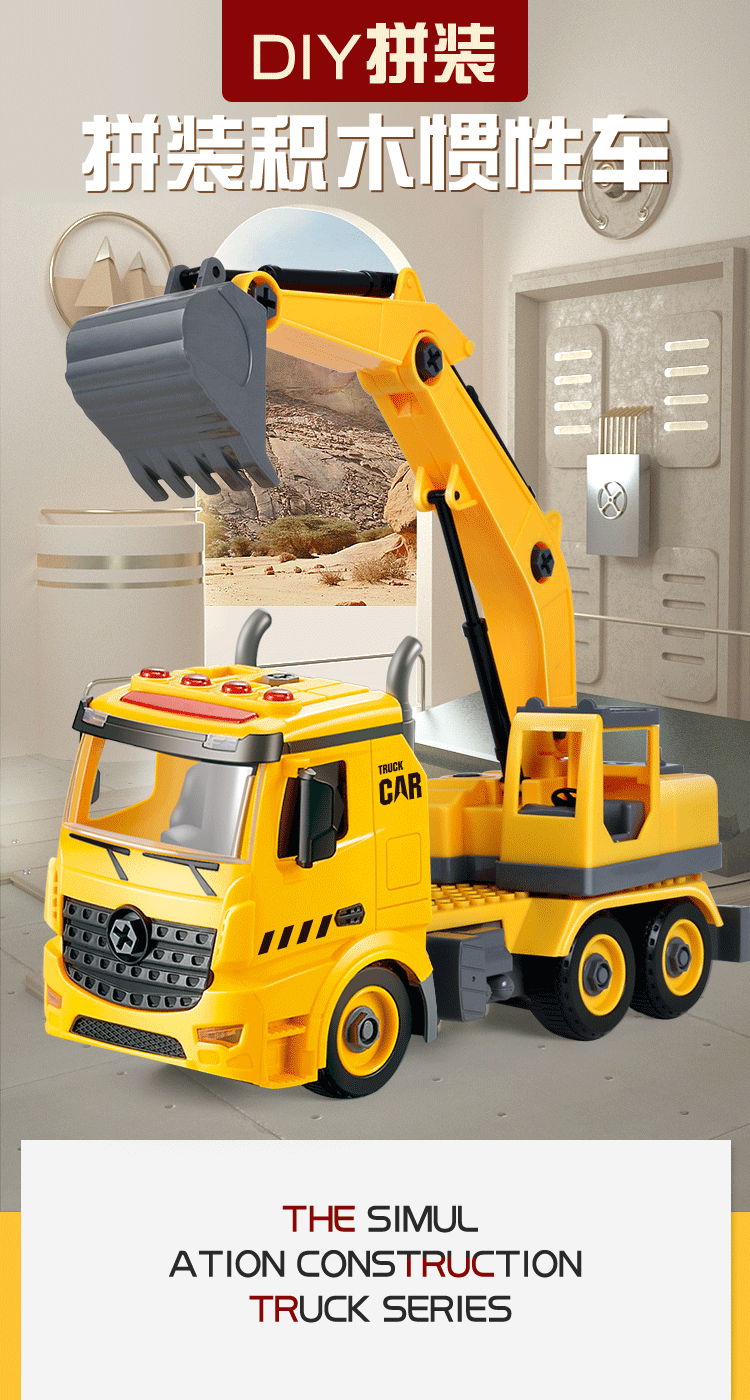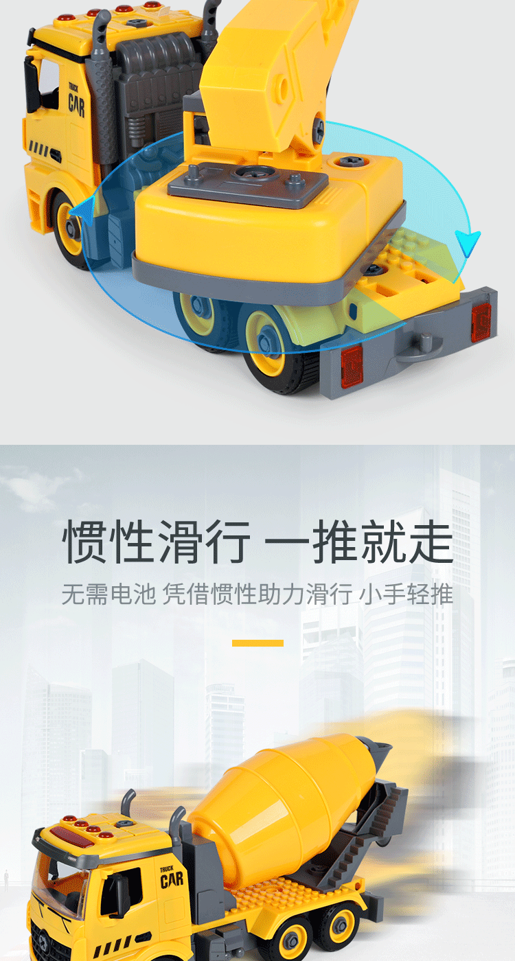 工程车玩具套装男孩吊车翻斗车惯性小汽车拆装儿童汽车挖掘机模型oem生产